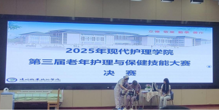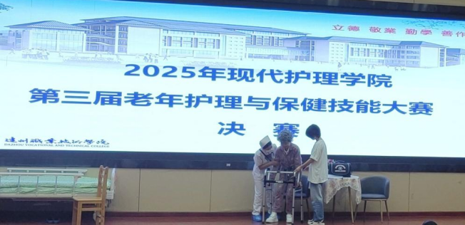 老年护理与保健赛项:聚焦社区服务场景,以 "实操 + 宣教" 双轨考核机制,全面检验选手的综合服务能力。选手需先以温和亲切的沟通礼仪建立信任关系,运用专业的护理术语与肢体语言安抚 "半瘫老人" 情绪,精准调节助步器高度,采用规范的搀扶姿势协助老人完成起立、行走训练。在整个操作过程中,选手需同步化身健康科普员,结合居家环境特点,用通俗易懂的语言讲解防跌倒知识,充分展现专业护理技能与人文关怀素养的深度融合。