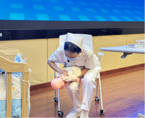 育婴员赛项:设置婴儿呛奶紧急处理,选手需在黄金急救时间内,精准完成“体位引流-清除异物-观察呼吸-二次评估”四步急救操作,向“宝妈”同步讲解呛奶急救、预防要点(如哺乳后拍嗝技巧)。赛事特别设置SP(标准化模拟家长),在选手急救过程中焦急咨询,选手需迅速切换沟通策略,以安抚性语言稳定家长情绪,同时确保急救动作规范。