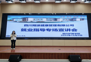 2025年12月5日中午,在明理楼一楼学术报告厅,四川翔派健康管理有限公司人事经理崔瑞芝为护理学子们带来一场干货满满的就业指导专场宣讲会。学院党总支书记兰武、院长祝瑜、副书记闫春晓、全体辅导员班主任和在校学生代表,共计170余人参加会议。